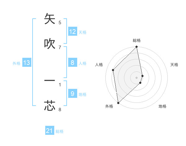 矢吹 一芯さんを姓名の画数から五運を鑑定