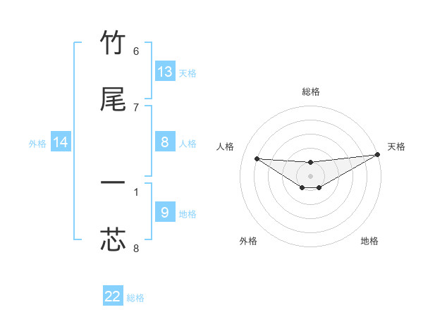 竹尾 一芯さんの総格は22画の1点!