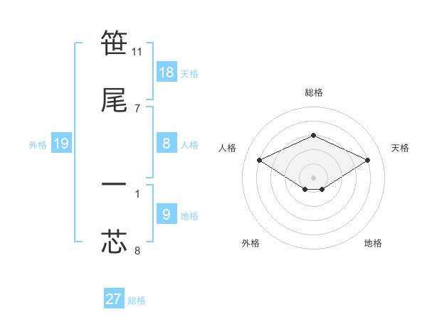 笹尾 一芯さんの総格は27画の3点!