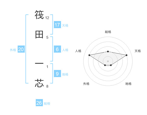 筏田 一芯さんの総格は26画の2点!