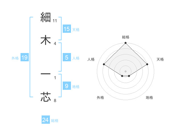 細木 一芯さんの天格は15画の4点!
