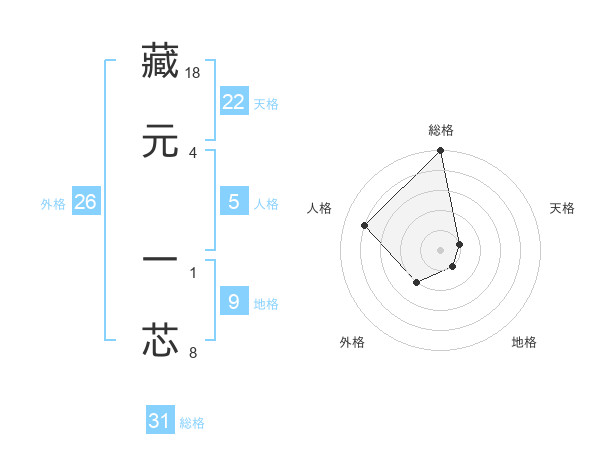 藏元 一芯さんを姓名の画数から五運を鑑定