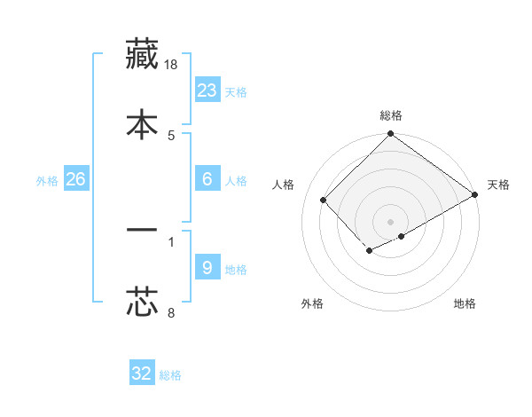 藏本 一芯さんを姓名の画数から五運を鑑定