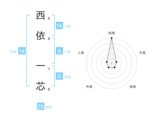 西依 一芯さんの総格は23画の5点!