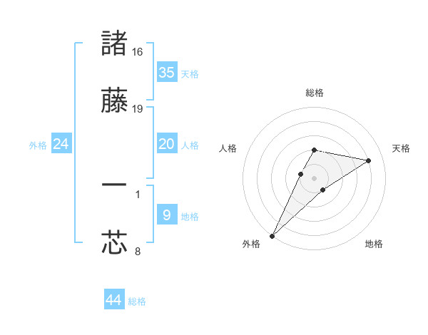 諸藤 一芯さんの総格は44画の2点!