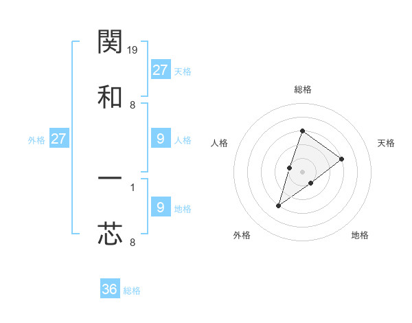 関和 一芯さんの外格は27画の3点!