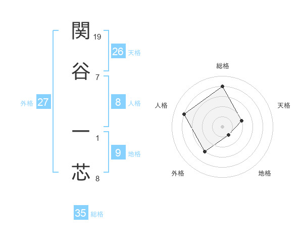 関谷 一芯さんの総格は35画の4点!
