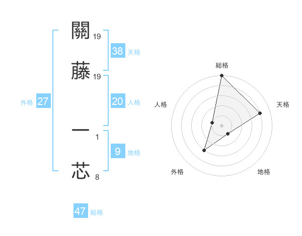 關藤 一芯さんの総格は47画の5点!