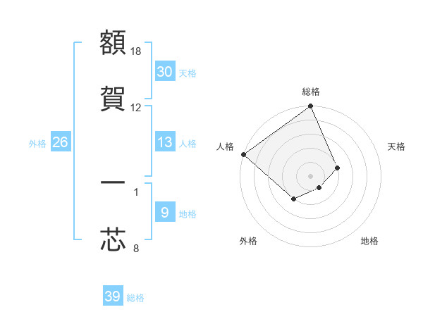 額賀 一芯さんを姓名の画数から五運を鑑定