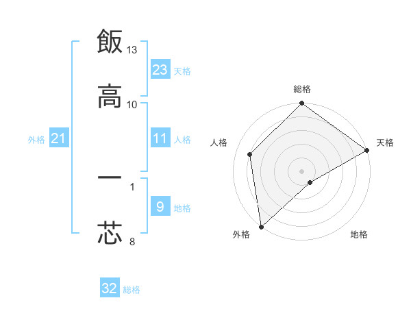 飯高 一芯さんを姓名の画数から五運を鑑定