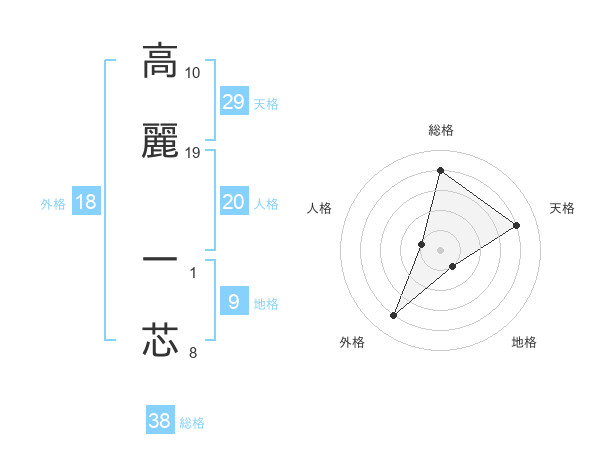 高麗 一芯さんを姓名の画数から五運を鑑定