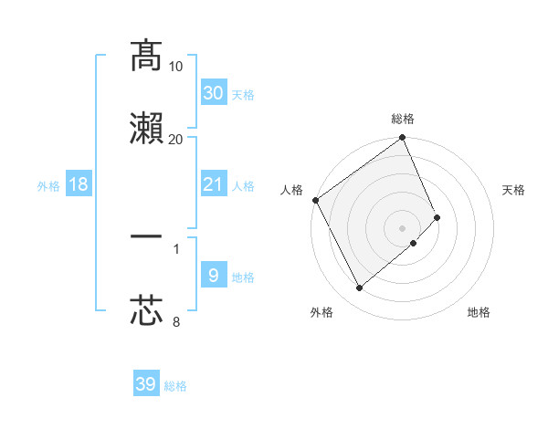髙瀨 一芯さんの総格は39画の5点!