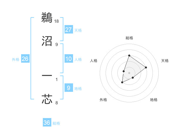 鵜沼 一芯さんの総格は36画の3点!