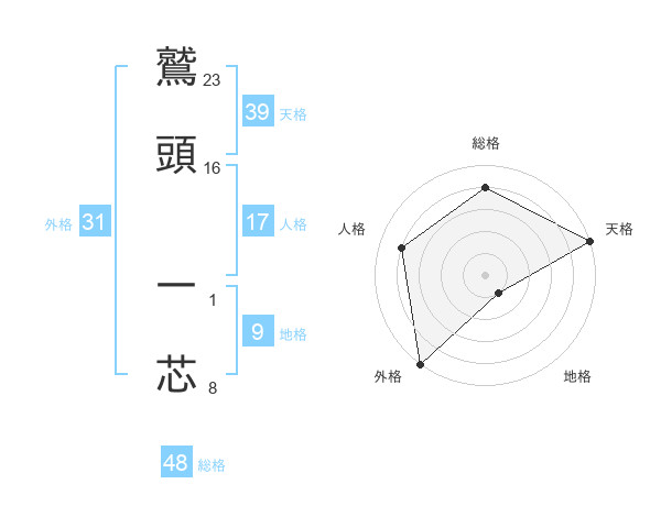 鷲頭 一芯さんを姓名の画数から五運を鑑定
