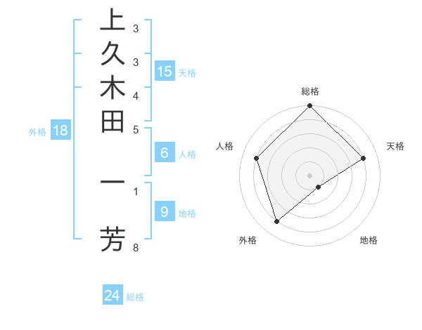 上久木田 一芳さんの天格は15画の4点!