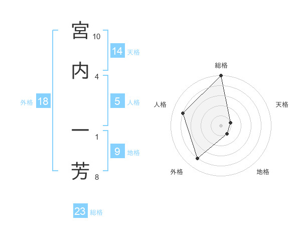 宮内 一芳さんを姓名の画数から五運を鑑定