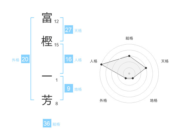 富樫 一芳さんを姓名の画数から五運を鑑定