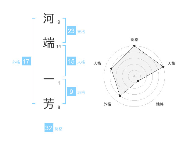 河端 一芳さんの総格は32画の5点!