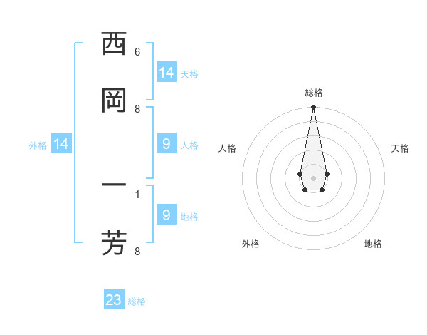 西岡 一芳さんを姓名の画数から五運を鑑定