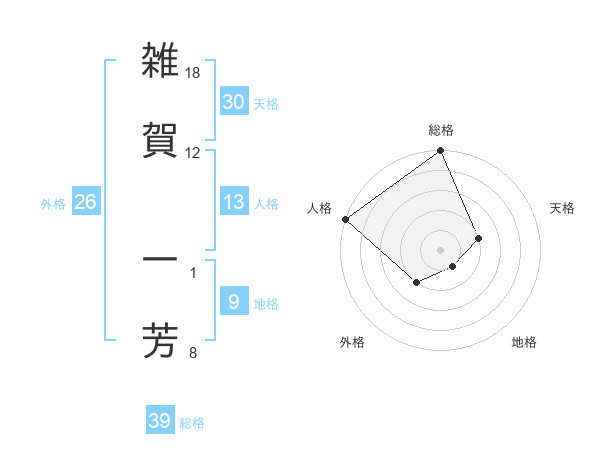雑賀 一芳さんを姓名の画数から五運を鑑定