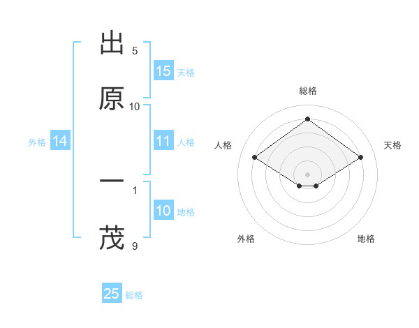 出原 一茂さんの総格は25画の4点!