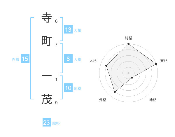 寺町 一茂さんの総格は23画の5点!