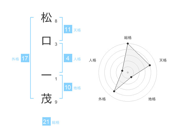 松口 一茂さんの総格は21画の5点!