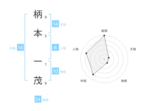 柄本 一茂さんの総格は24画の5点!