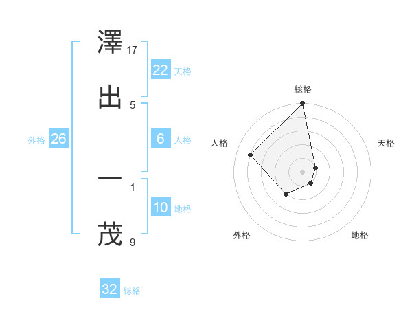 澤出 一茂さんの総格は32画の5点!