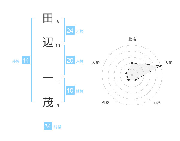 田辺 一茂さんを姓名の画数から五運を鑑定