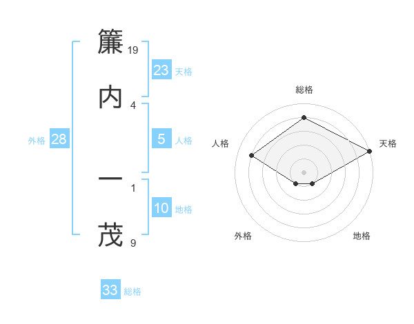 簾内 一茂さんの天格は23画の5点!