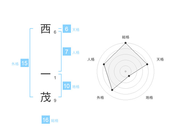西 一茂さんの総格は16画の5点!