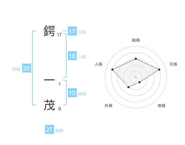 鍔 一茂さんを姓名の画数から五運を鑑定