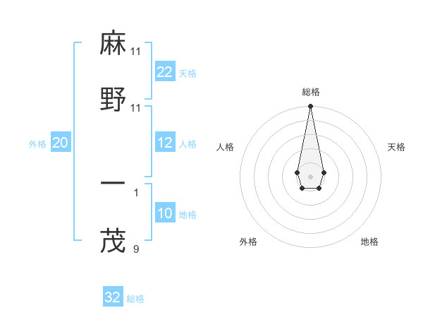 麻野 一茂さんの総格は32画の5点!