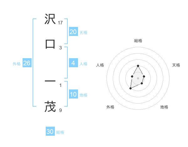 沢口 一茂さんの総格は30画の2点!
