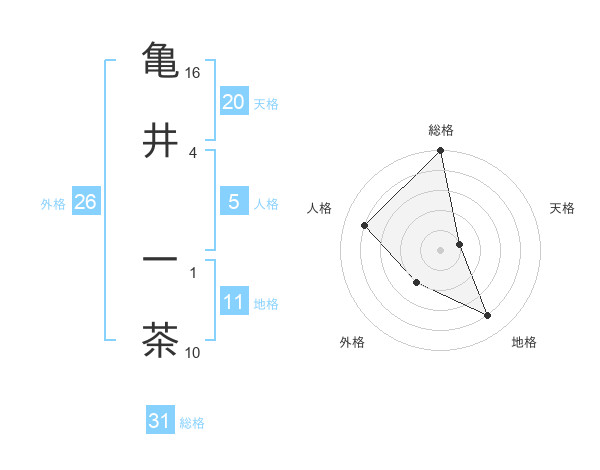 亀井 一茶さんを姓名の画数から五運を鑑定