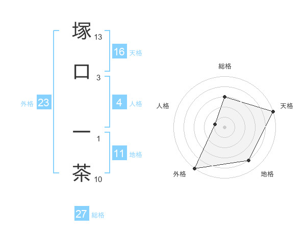 塚口 一茶さんの外格は23画の5点!