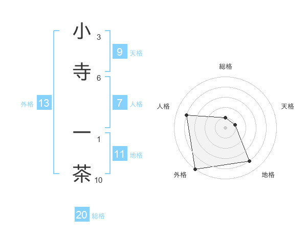 小寺 一茶さんを姓名の画数から五運を鑑定