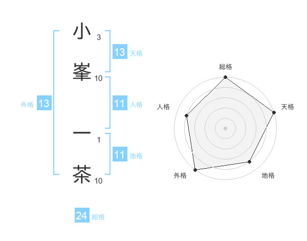 小峯 一茶さんを姓名の画数から五運を鑑定