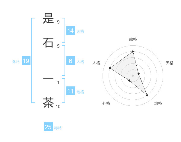 是石 一茶さんの総格は25画の4点!