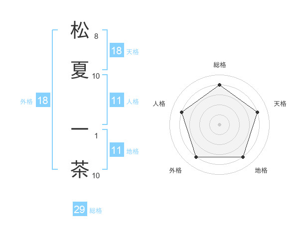 松夏 一茶さんの総格は29画の4点!
