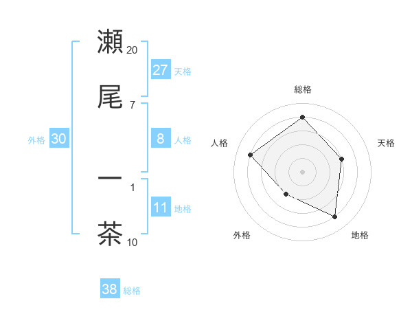 瀬尾 一茶さんを姓名の画数から五運を鑑定