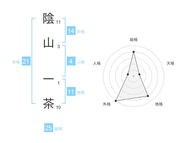 陰山 一茶さんを姓名の画数から五運を鑑定