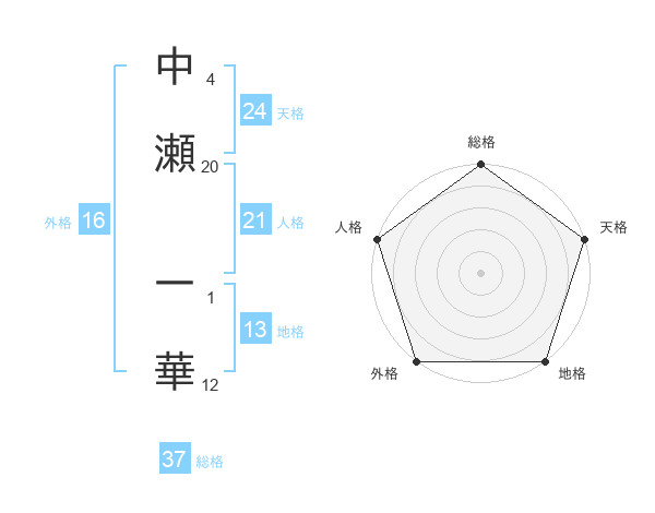 中瀬 一華さんを姓名の画数から五運を鑑定