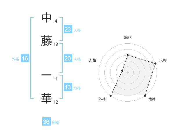 中藤 一華さんの天格は23画の5点!