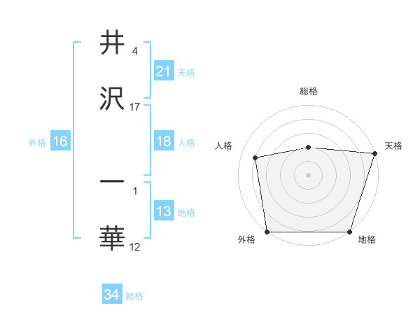 井沢 一華さんの天格は21画の5点!