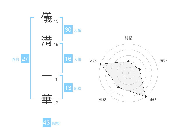 儀満 一華さんの天格は30画の2点!