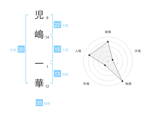児嶋 一華さんの天格は22画の1点!