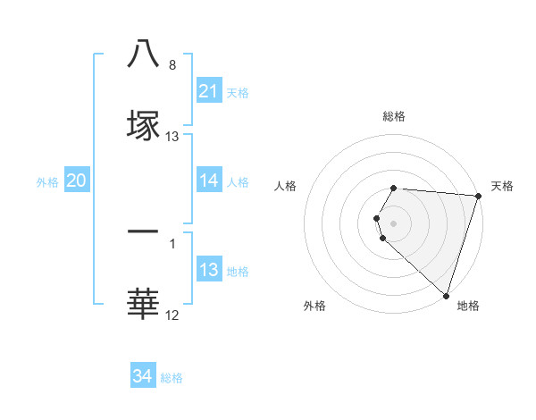 八塚 一華さんの天格は21画の5点!