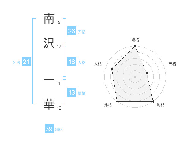 南沢 一華さんの総格は39画の5点!